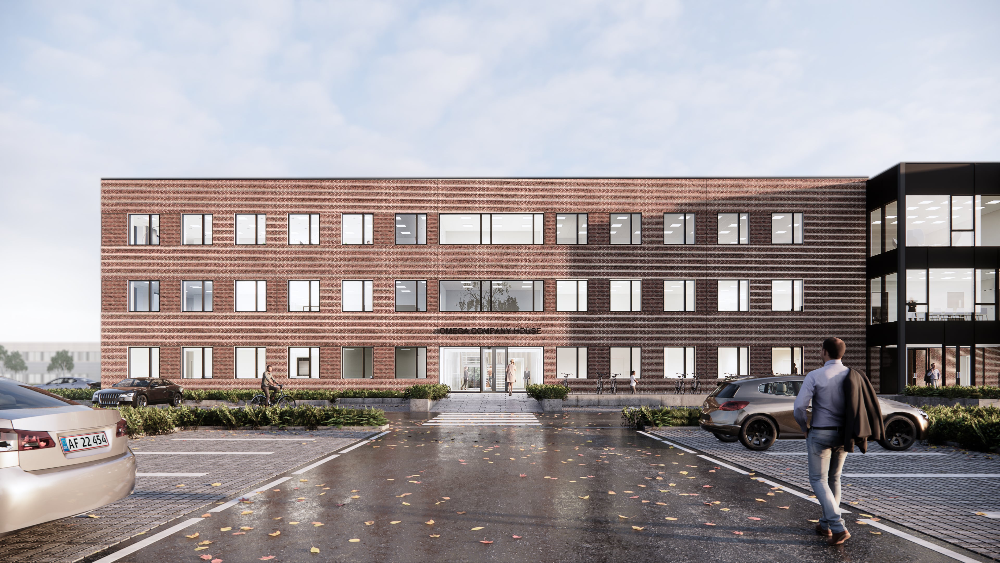 - Ejendommen er opført med røde mursten og store vinduespartier, som sikrer et godt lysindfald i lokalerne.